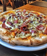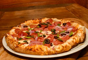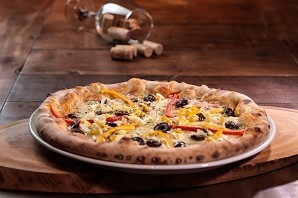 Nossas pizzas são assadas no forno a lenha. Utilizamos farinha especial italiana de alta qualidade e de longa fermentação, proporcionando uma massa fina, leve e crocante.