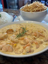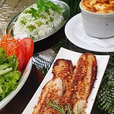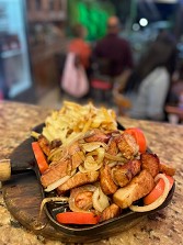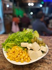 São servidos petiscos como peixes, moquecas, carnes grelhadas, entradas, sobremesas e muito mais.
